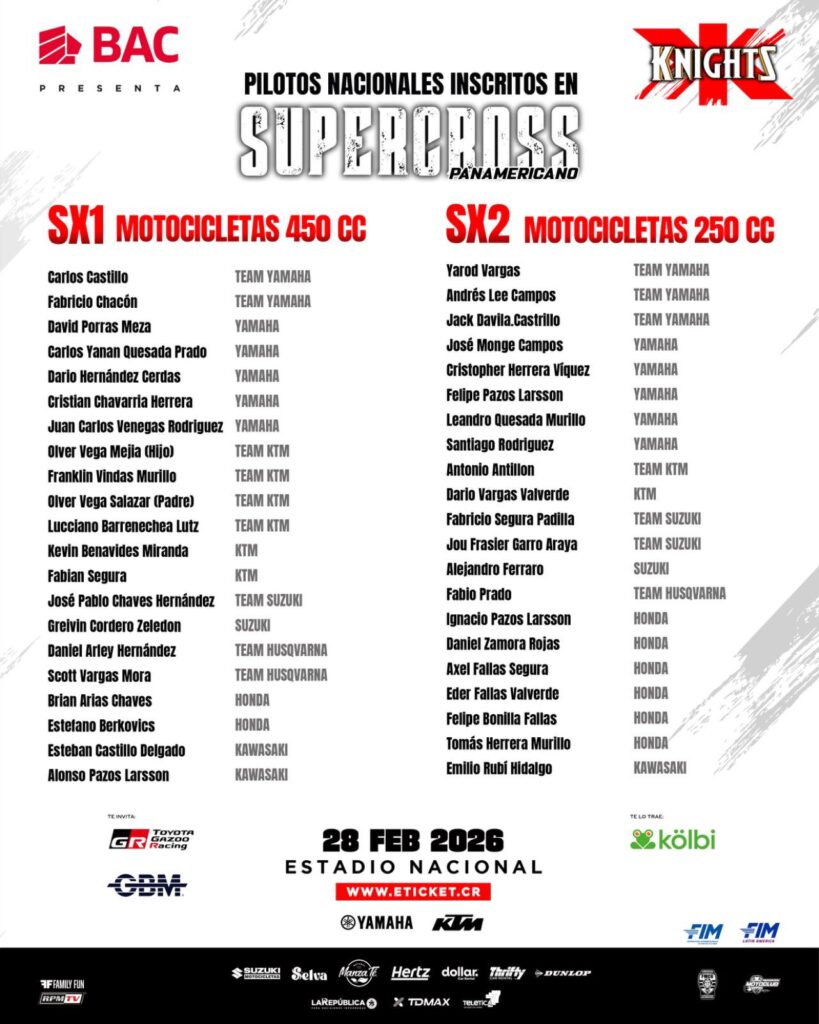 El Supercross de X-Knights 2026 marcará un antes y un después en la historia del motociclismo regional, luego de confirmarse que la competencia contará oficialmente con el aval como Campeonato Panamericano, elevando aún más el nivel del evento que se disputará el próximo 28 de febrero en el Estadio Nacional de Costa Rica.